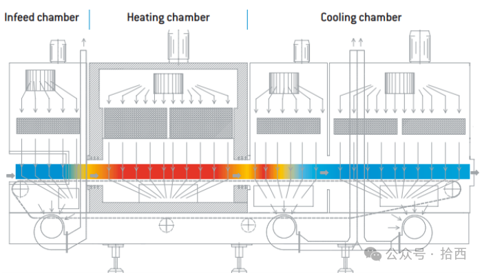 至于关键工艺参数(CPP),对于干热法而言,则是时间和温度。样品瓶由传送带驱动,依次通过三个区域。在高温区,干燥空气经热交换器加热至指定温度,从而加热样品瓶。样品瓶在隧道内的停留时间取决于隧道长度、温度和传送带速度。