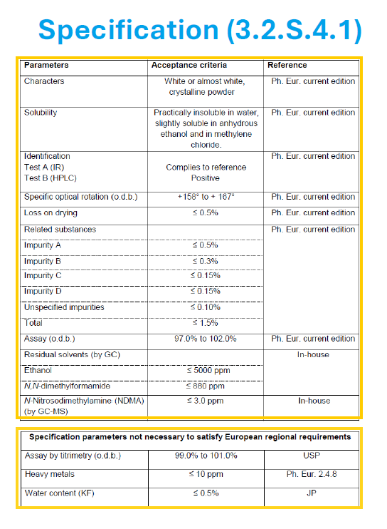 2. API专论中未要求,但用于API质量控制的检验项目在S41中单独的表中列出。