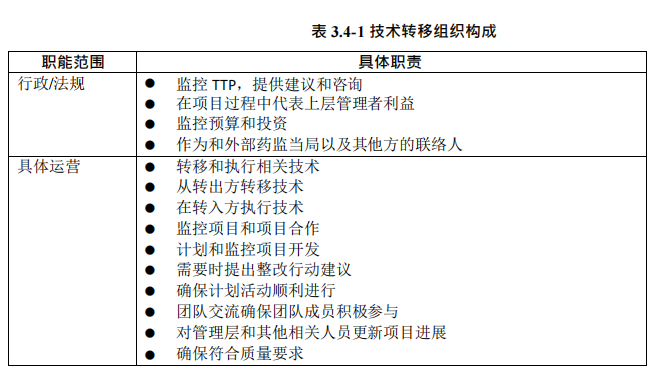 1、技术转移首先成立小组,明确职能分工。这是从商务和管理层面上需要考虑的问题,下面附了一个TR65 技术转移里的职能表格供参考